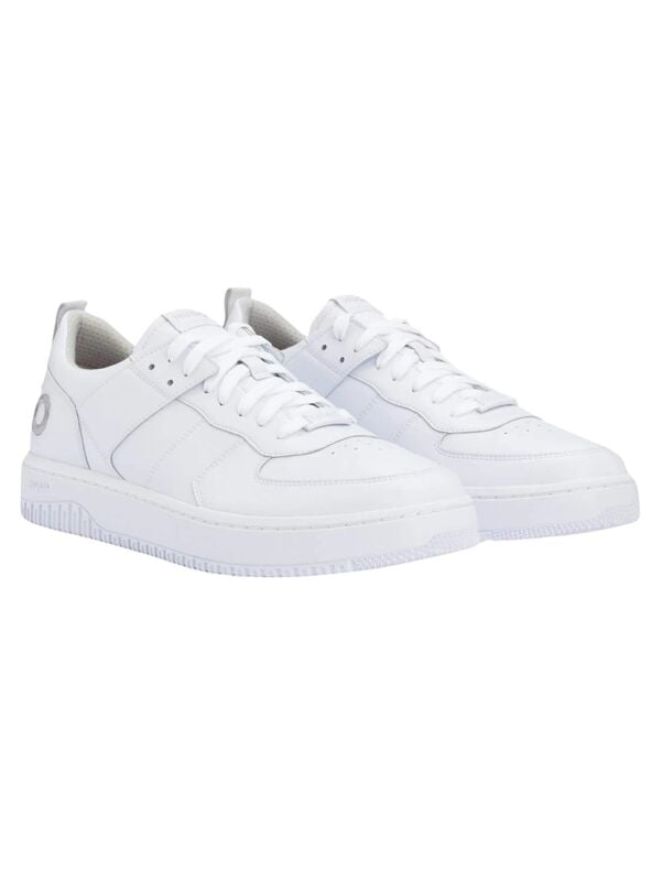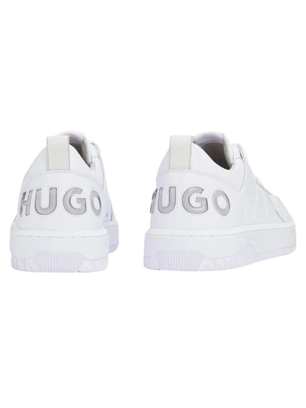 Muške bijele HUGO tenisice sa srebrnom logo aplikacijom iznad pete