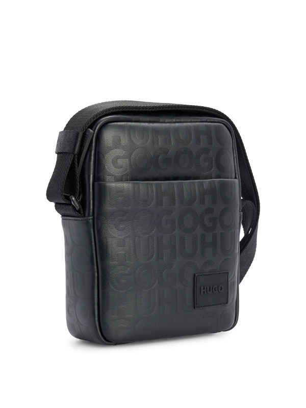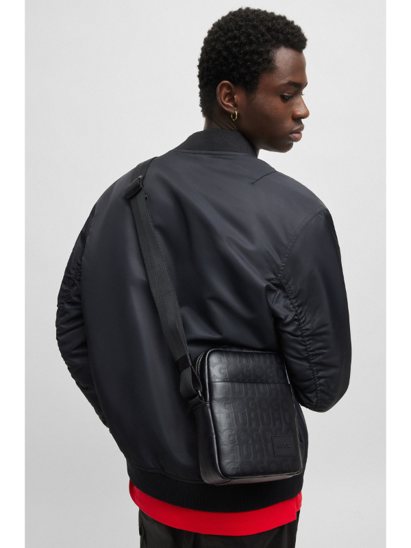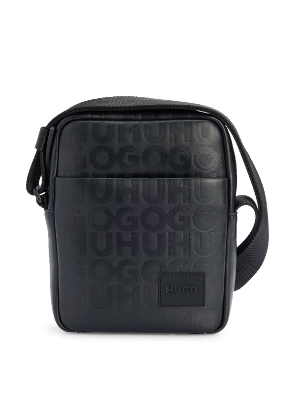 Muška crna Hugo reporterska torba od umjetne kože s all over monogramom