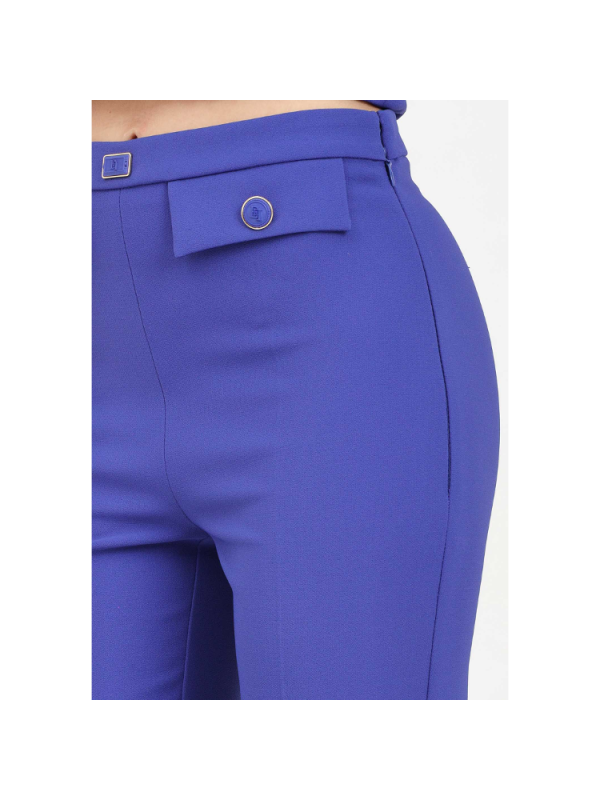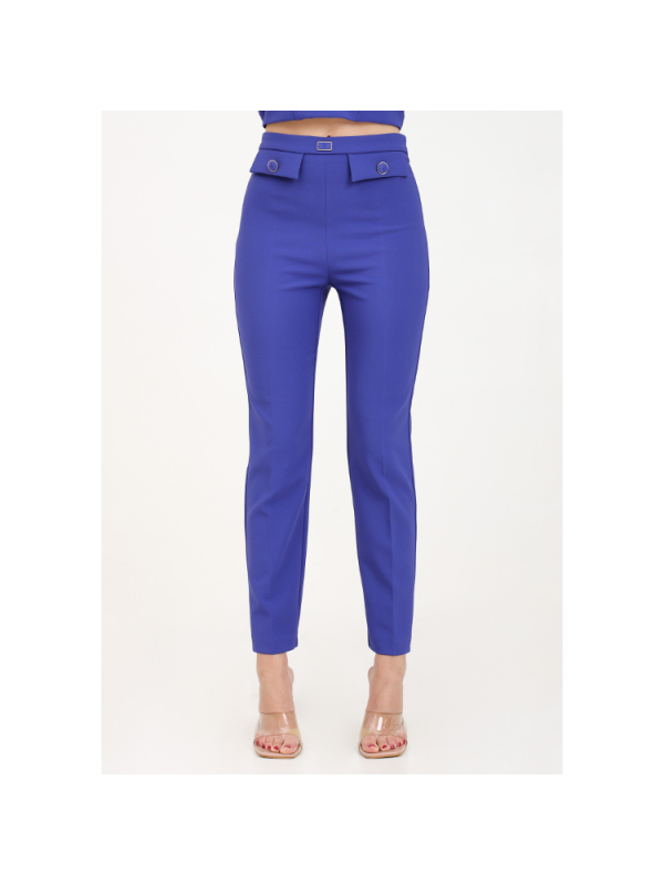 Ženske ELISABETTA FRANCHI indigo plave hlače s gumbima i logom.
