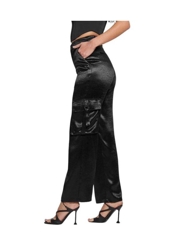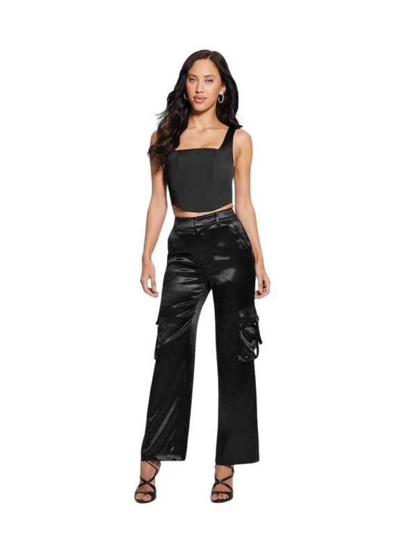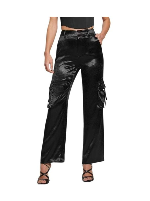 Ženske crna Guess Jamie ženske kargo hlače sa satenskim sjajem.