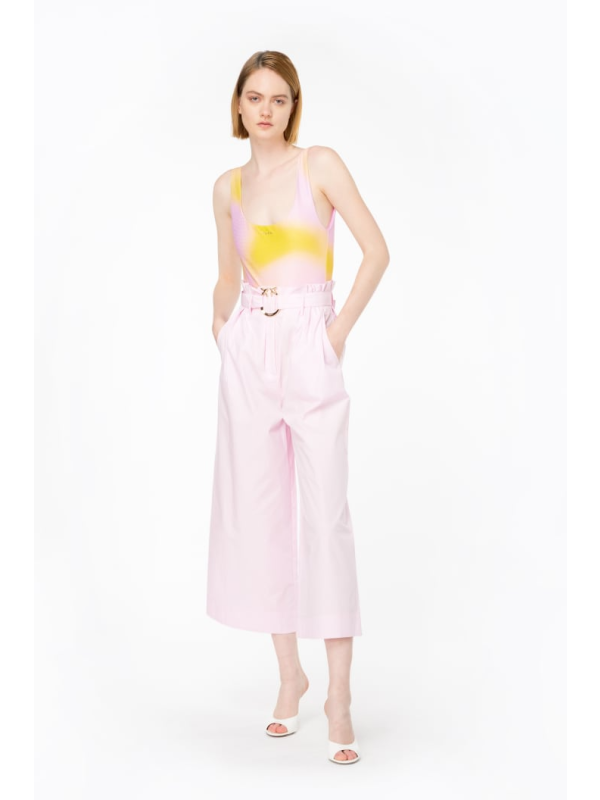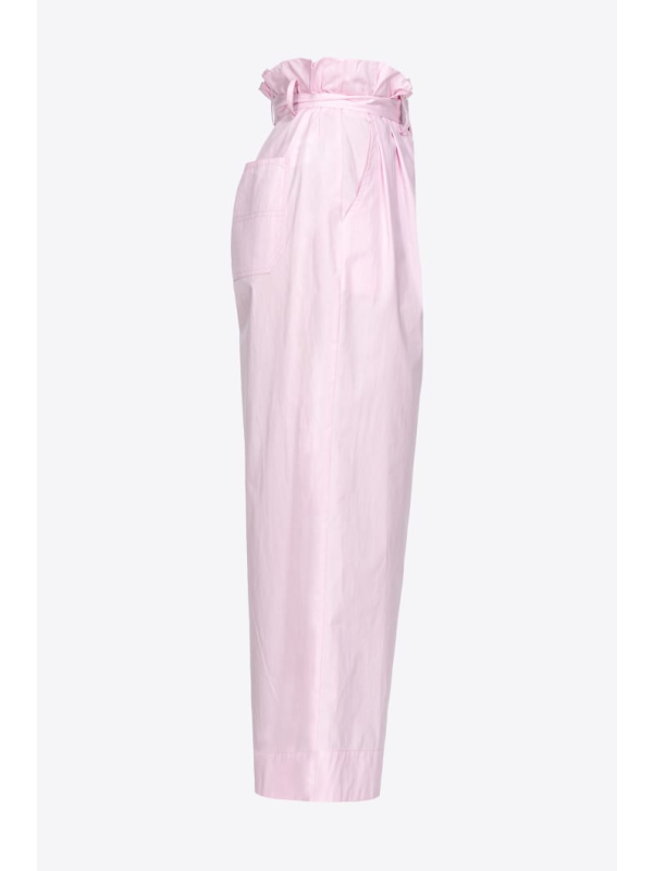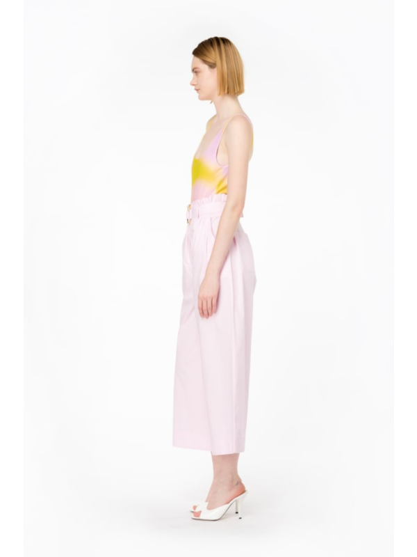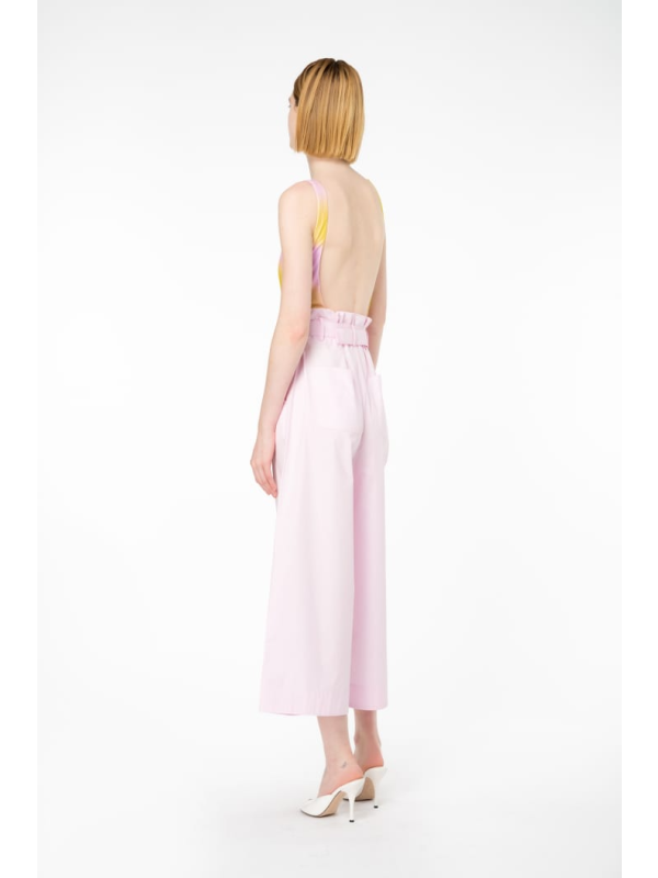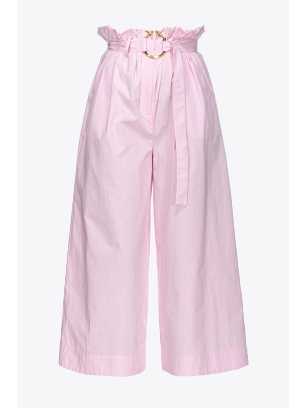 • Skraćene široke nogavice koje se lagano šire pri dnu, kosi bočni džepovi i našiveni džepovi na leđima.