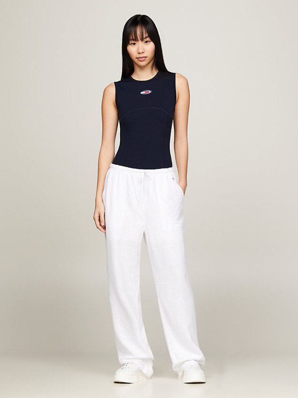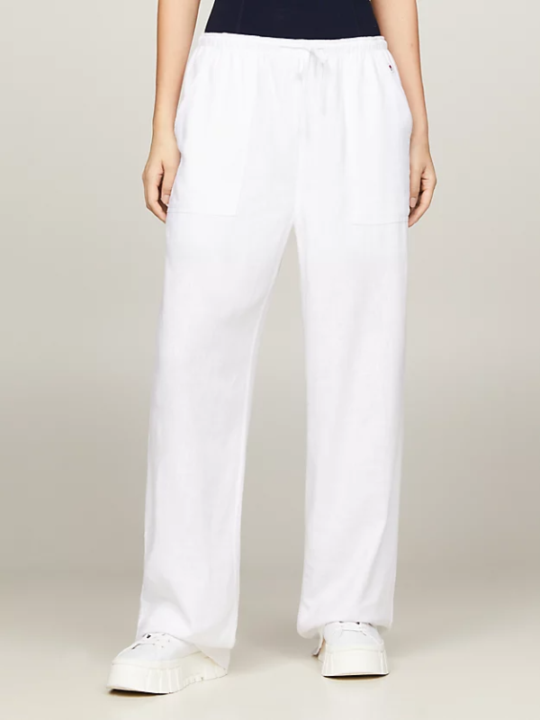 Ženske Tommy Hilfiger ležerne hlače od mješavine lana koje se lako nosi sa sportskim vezicama u struku