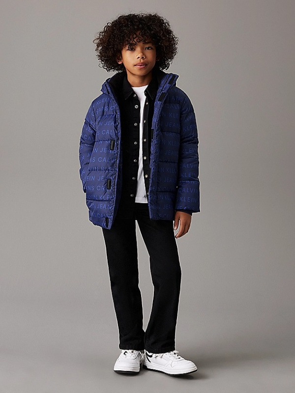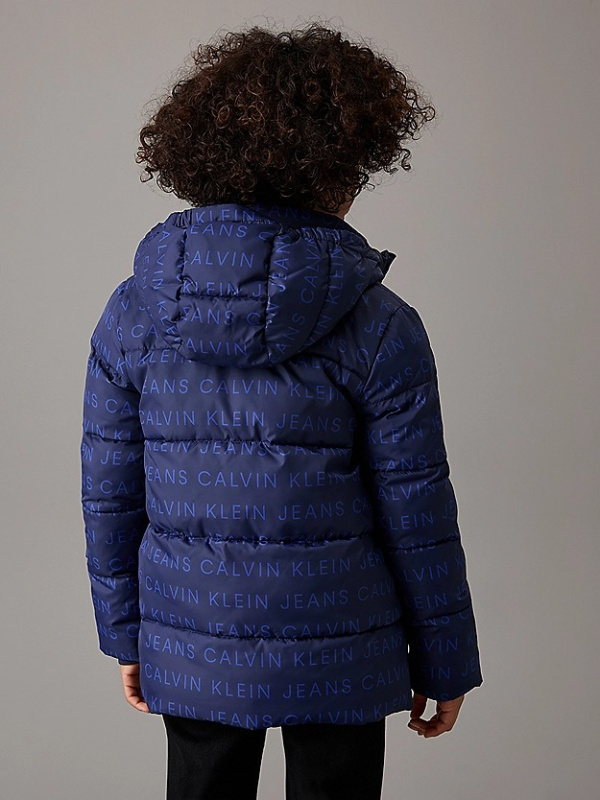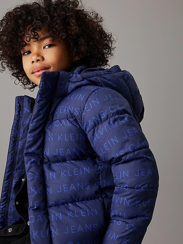 Tamnoplava Calvin Klein jakna za dječake s all over logo printom