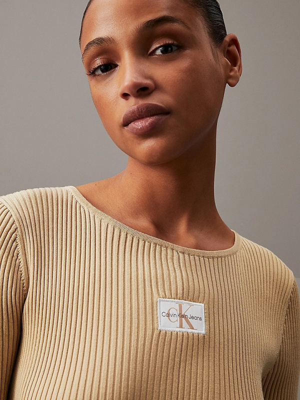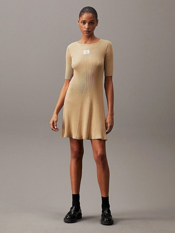 Ženska svijetla khaki Calvin Klein mekana rebrasta haljina od liocela