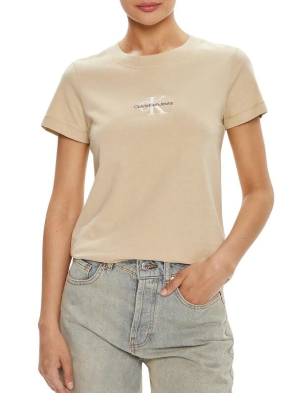 Ženska pamučna Calvin Klein bež majica kratkih rukava
