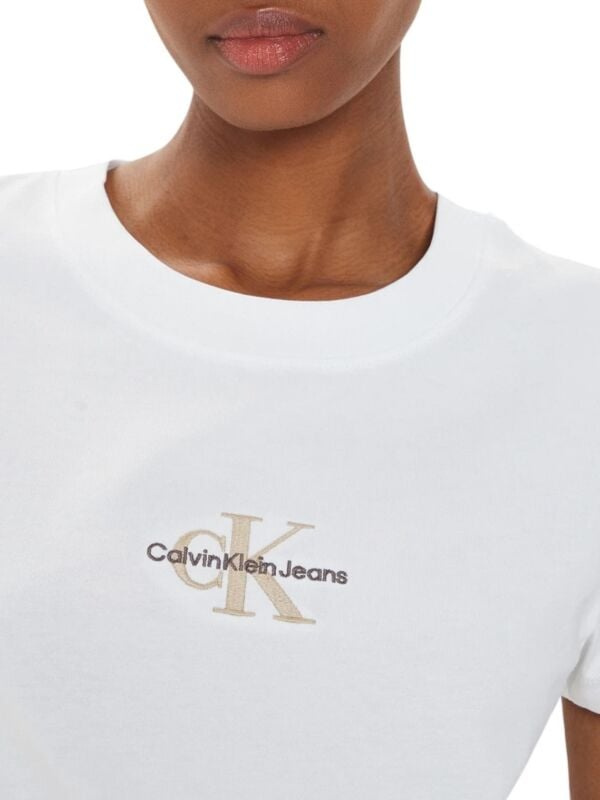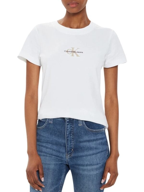 Ženska bijela Calvin Klein majica kratkih rukava s monogramom i logom detaljem