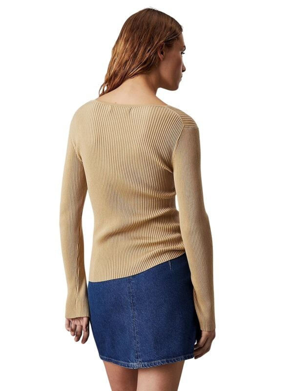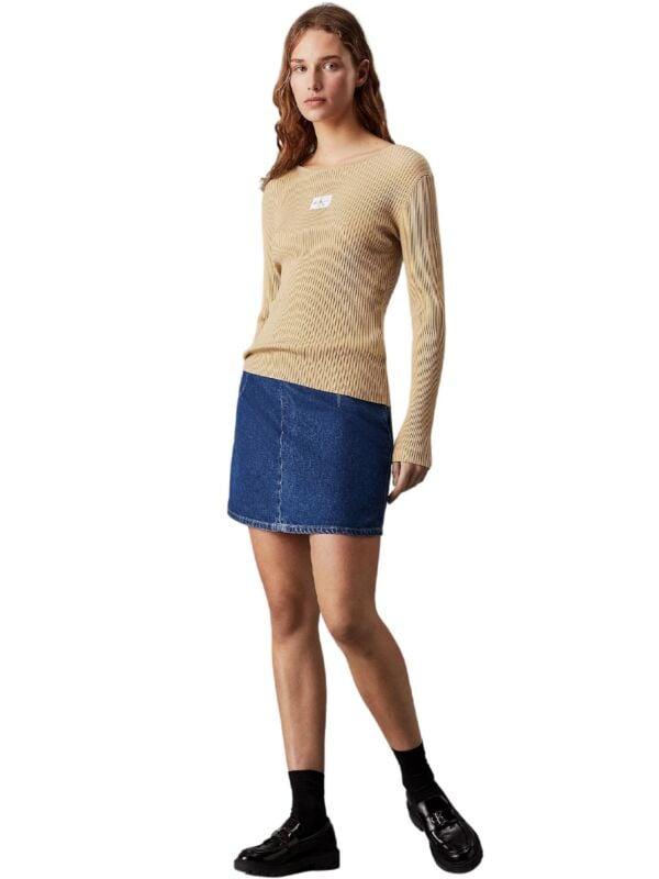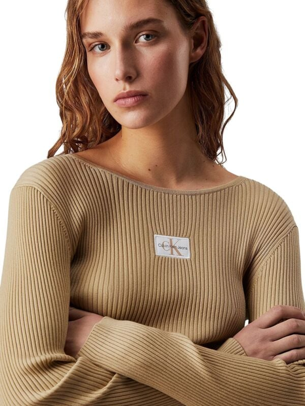 Ženski rebrasti svijetlosmeđi Calvin Klein pulover s logom na prsima