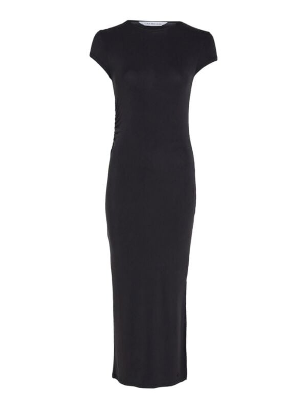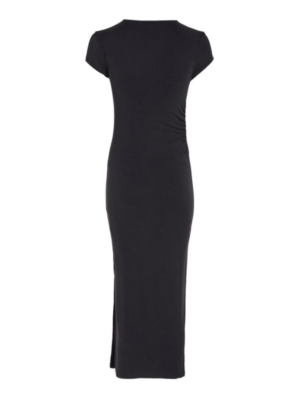 Ženska crna Calvin Klein midi haljina kratkih rukava koja prati liniju tijela