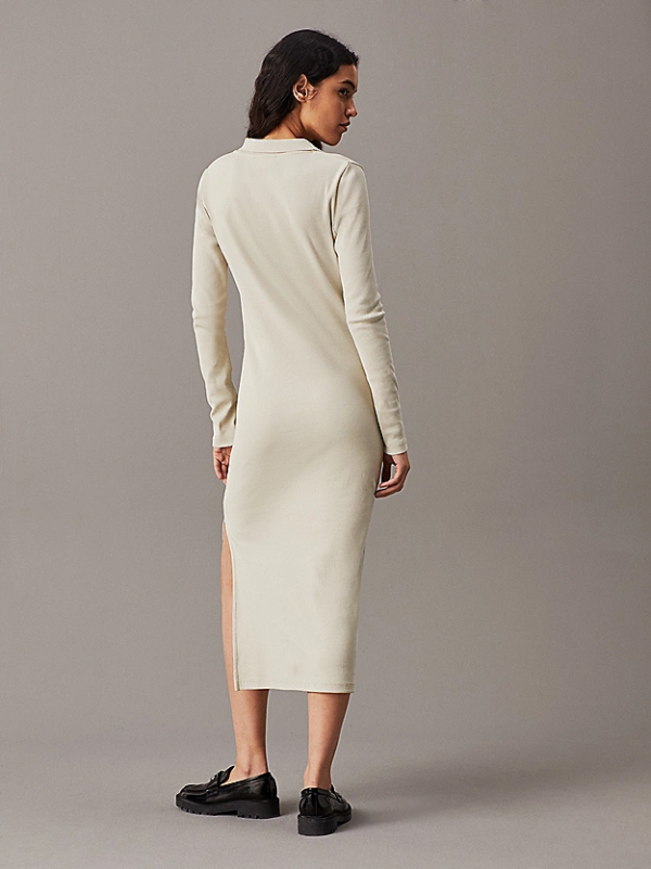 Haljina ženska Calvin Klein bež boje sa logotipom