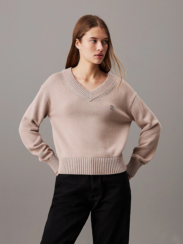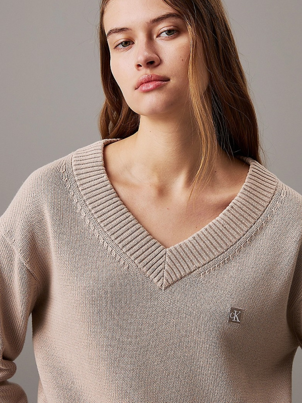 Ženski Calvin Klein pulover s logom i V-izrezom