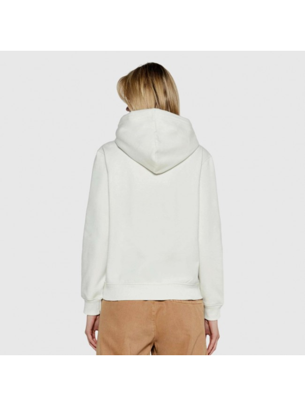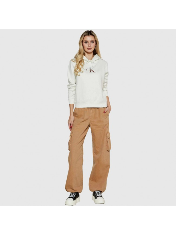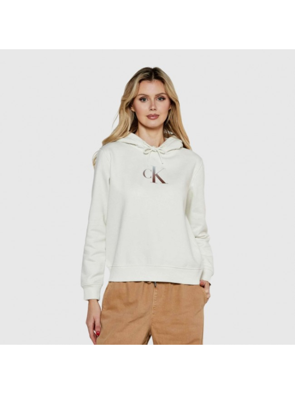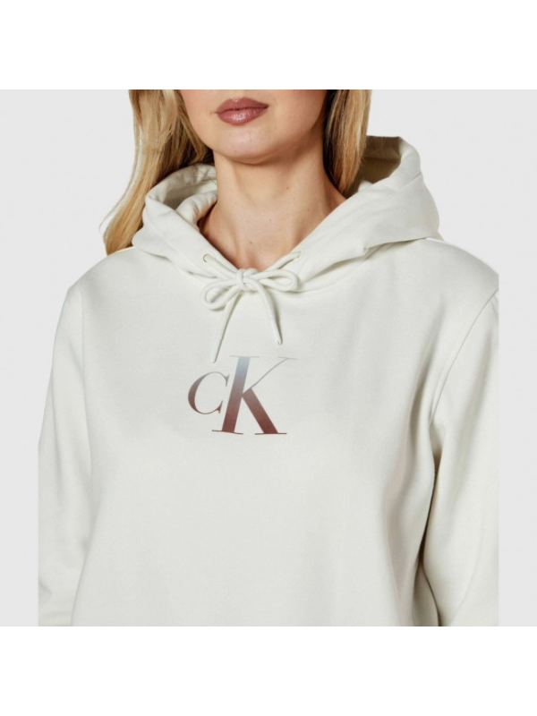 Ženska prljavo bijela Calvin Klein majica dugih rukava s logom na prsima i kapuljačom