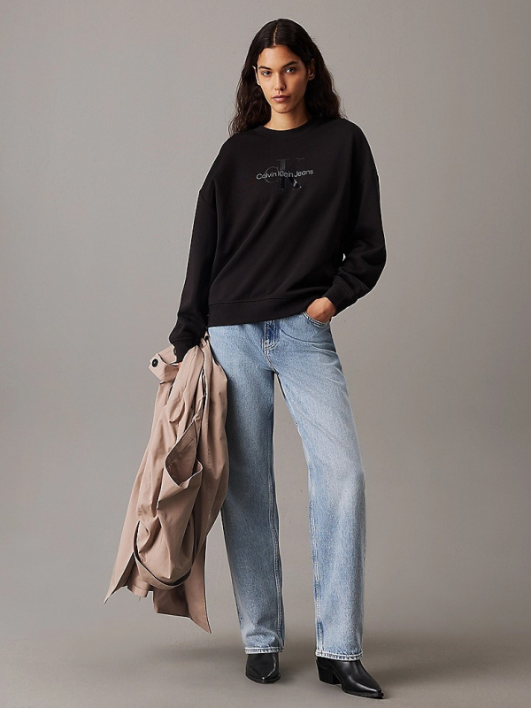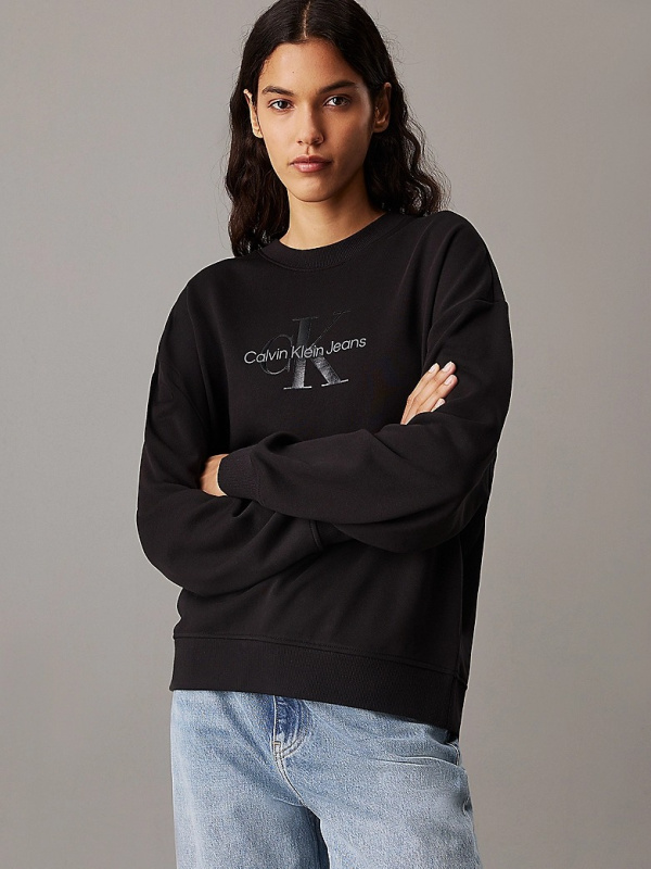 Ženska crna Calvin Klein majica dugih rukava s logom na prsima