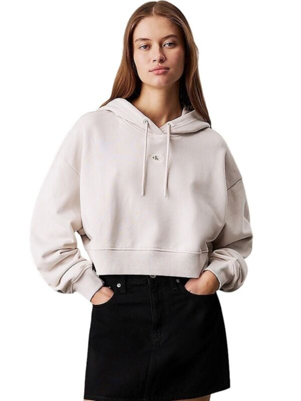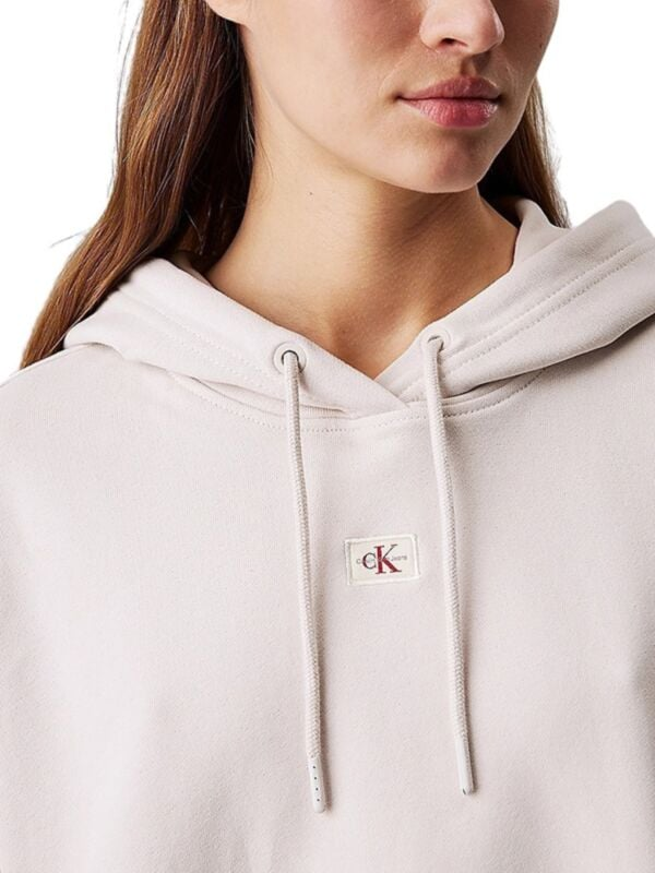 Ženska prljavo bijela Calvin Klein boxy fit majica s kapuljačom i logom na prsima