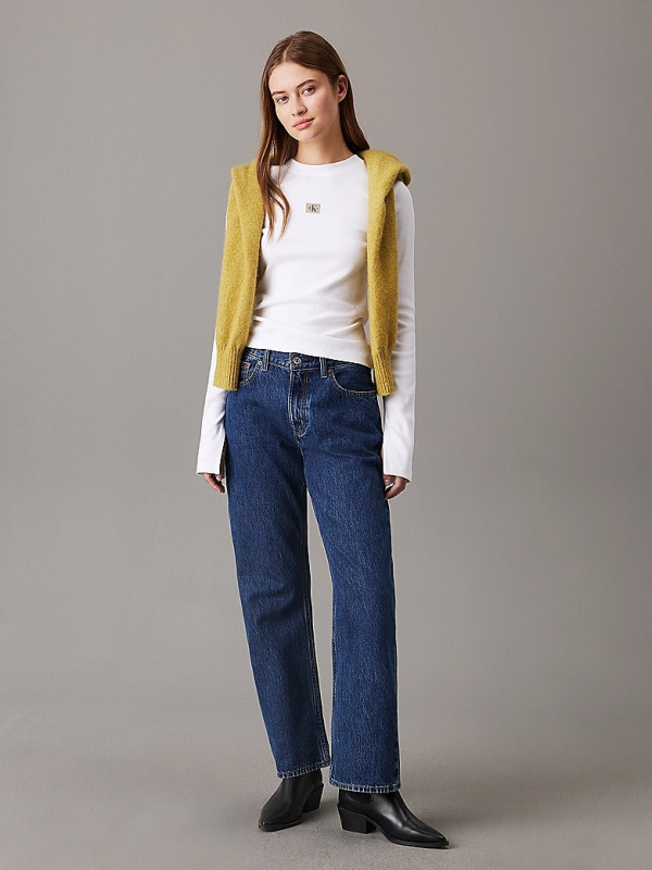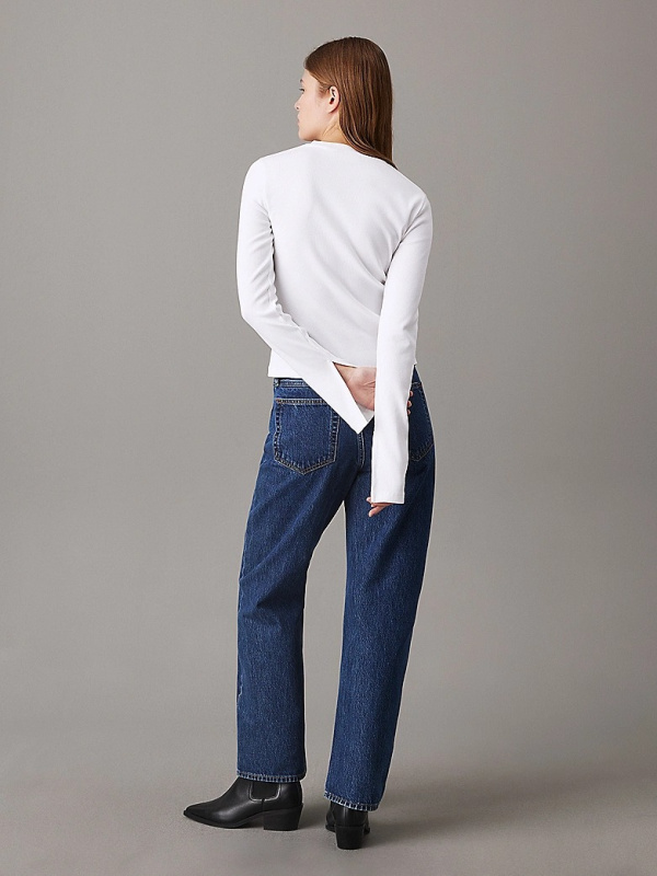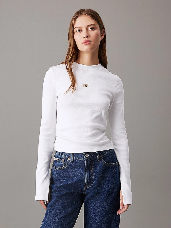 Ženski bijeli rebrasti Calvin Klein top s logom na prsima