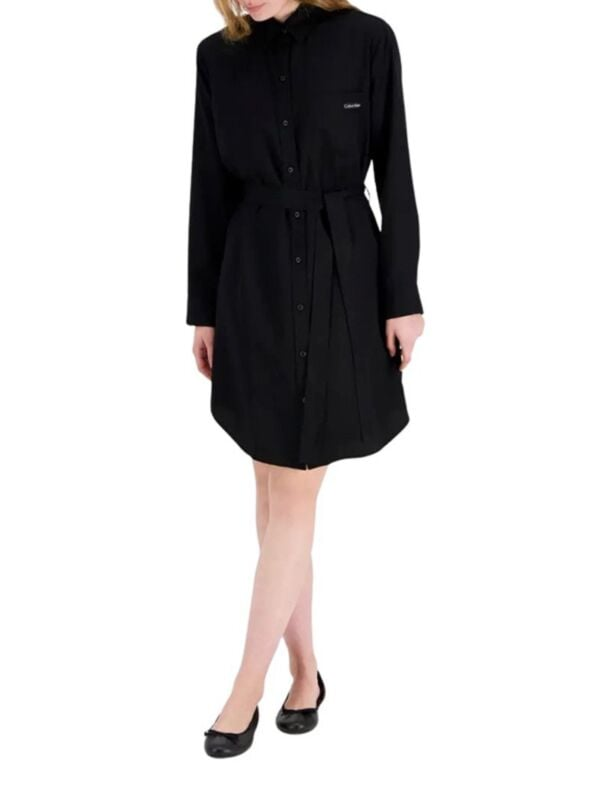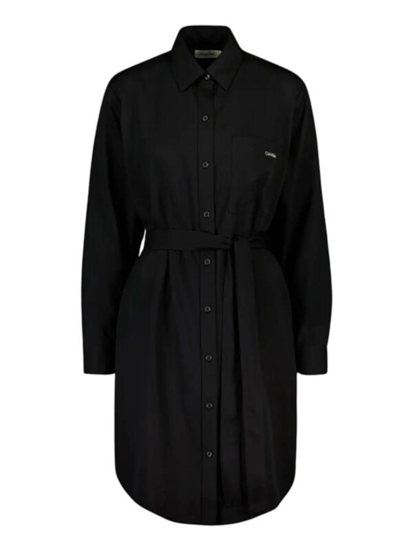 Ženska crna Clavin Klein mini košulja-haljina s kaiš-trakom oko struka i logom na prsima