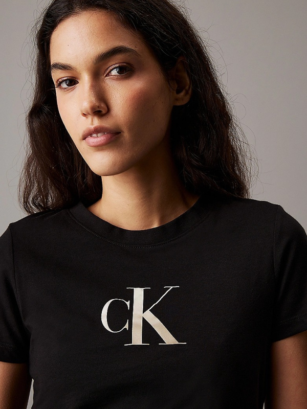 Ženska crna Calvin Klein majica kratkih rukava s logom na prsima