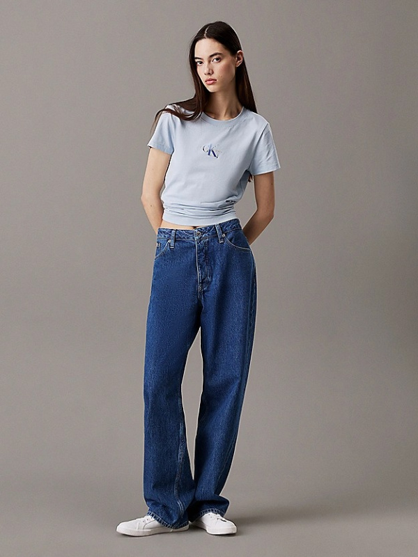 Ženska svijetloplava Calvin Klein majica kratkih rukava s logom na prsima