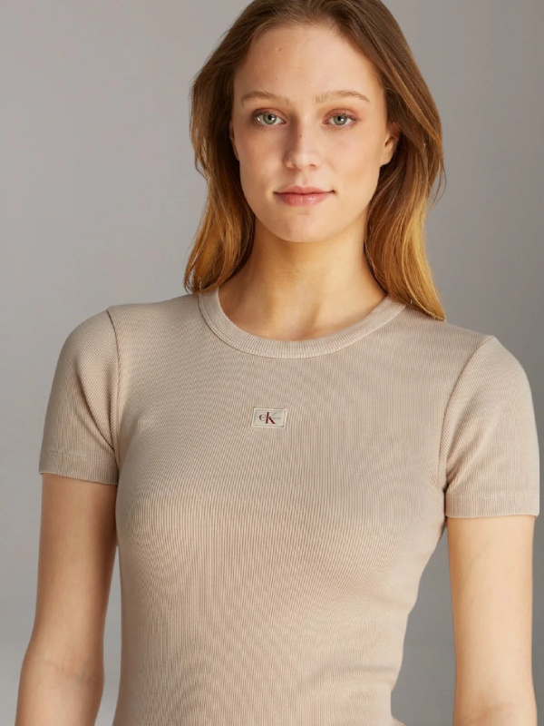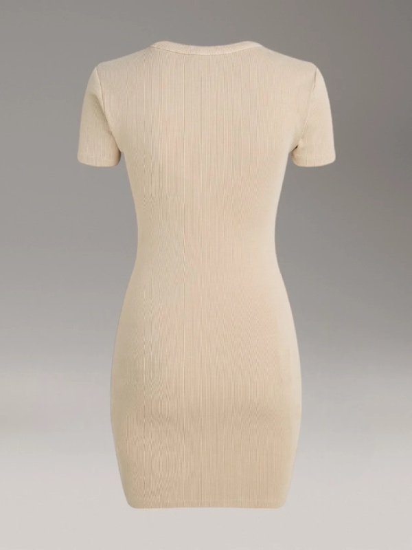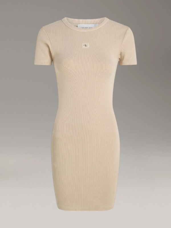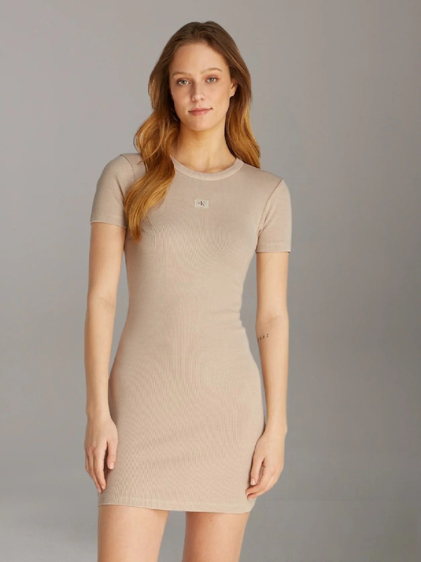 Ženska rebrasta Calvin Klein mini bež haljina kratkih rukava