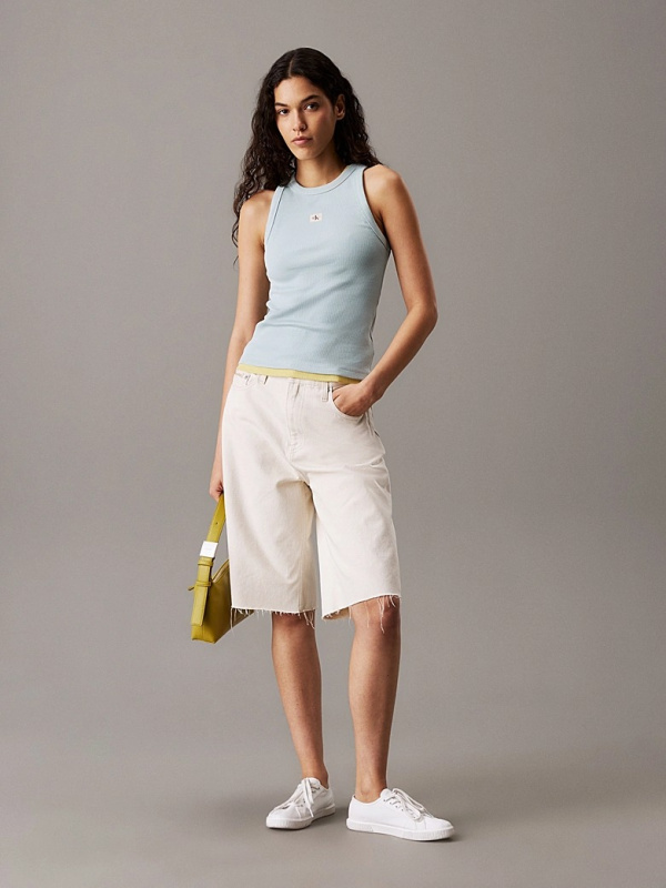 Ženski svijetloplavi Calvin Klein rebrasti tank top s logom na prsima