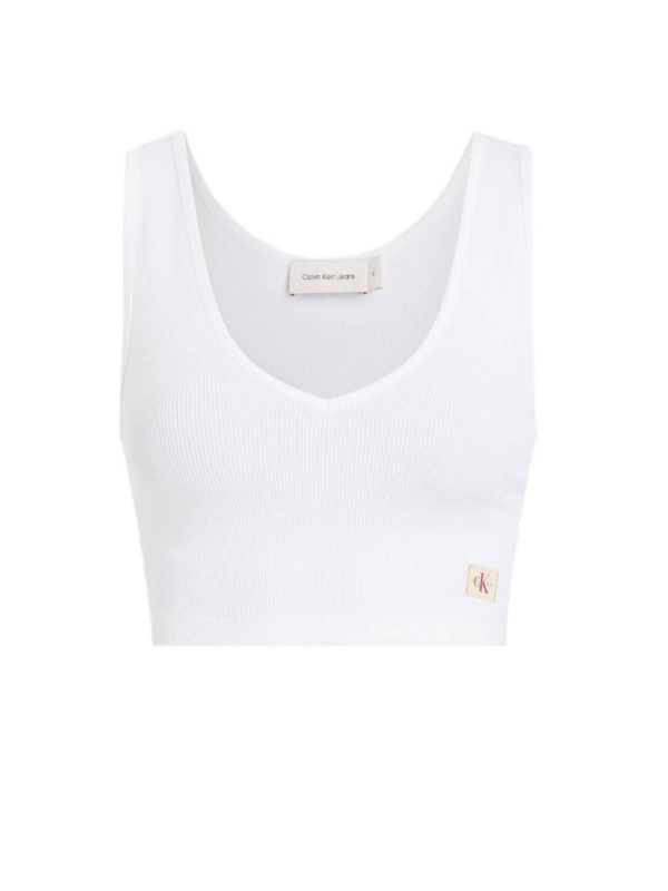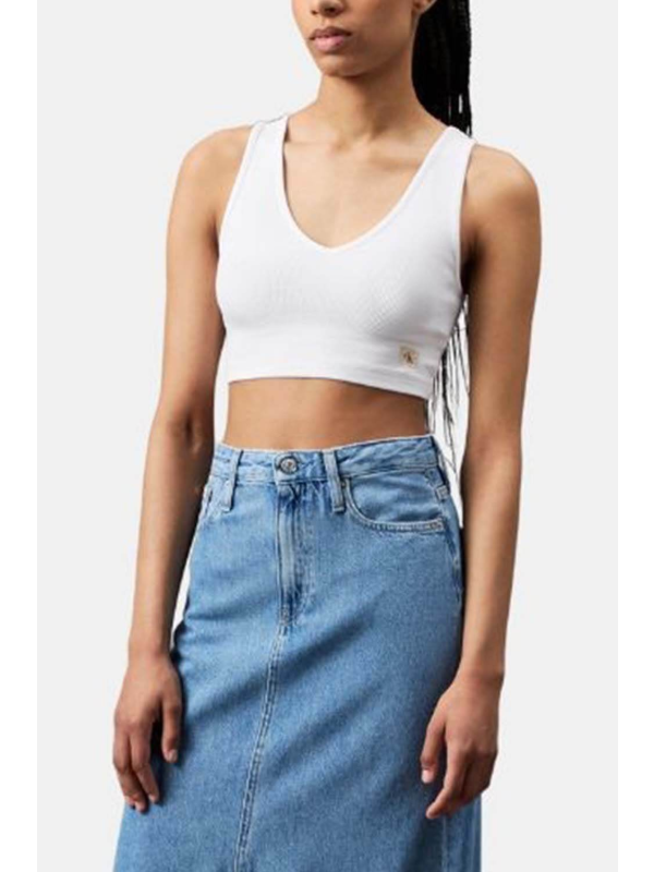Ženski bijeli rebrasti Calvin Klein top s V izrezom