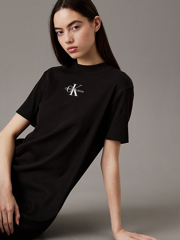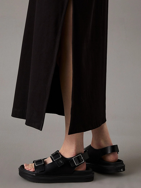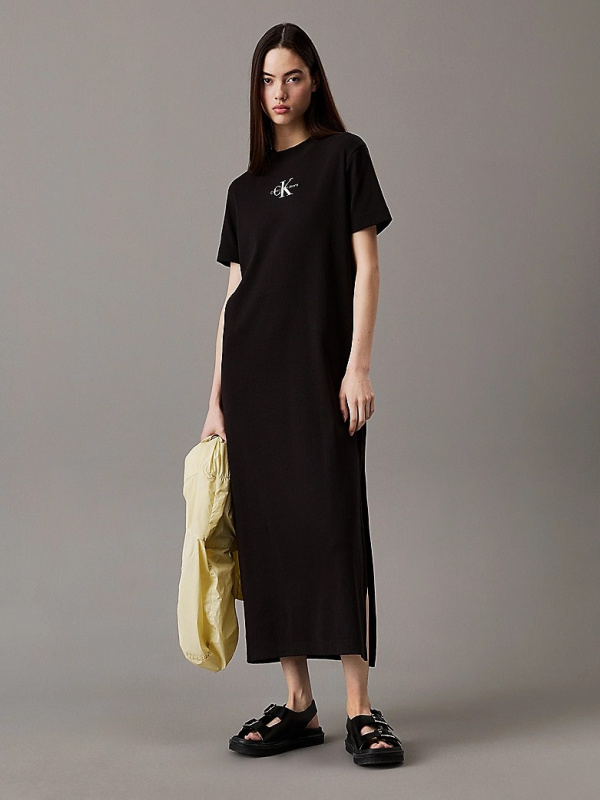 Ženska crna Calvin Klein rebrasta pamučna maxi haljina