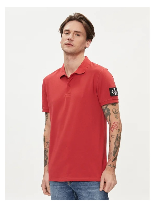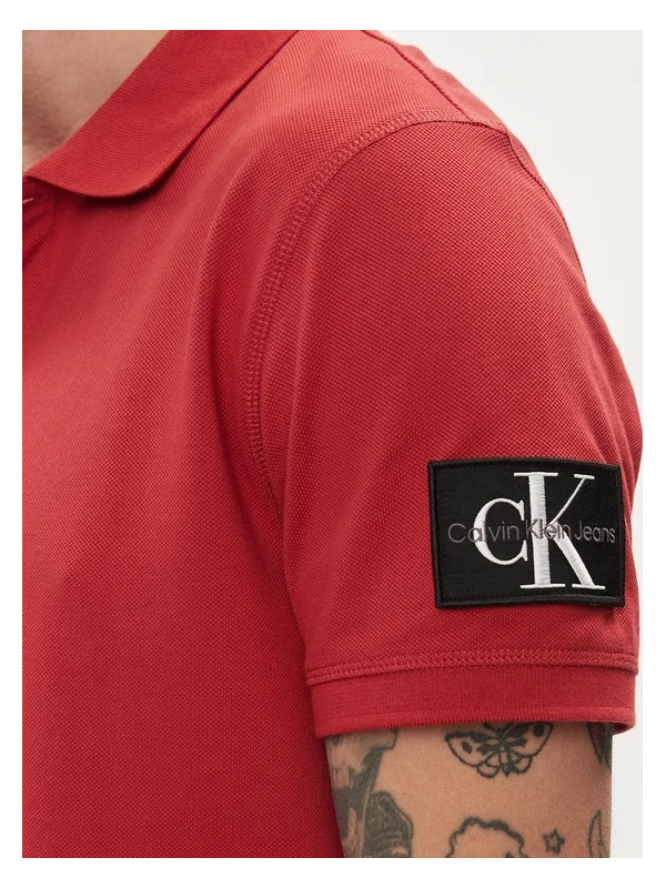 Muška crvena Calvin Klein pamučna majica s logo bedžom od biopamuka