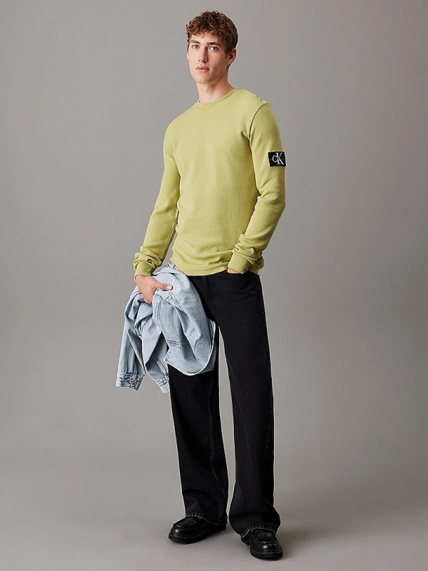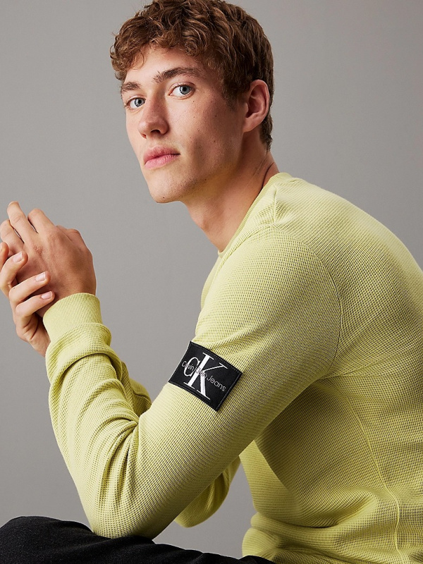 Muška zelena Calvin Klein majica dugih rukava s logo badgeom na rukavu