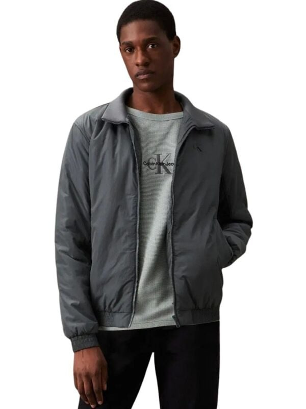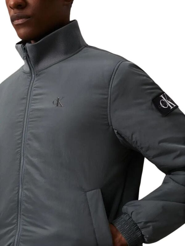 Muška tamnosiva Calvin Klein najlon jakna sa okovratnikom koji se spušta u kragnu