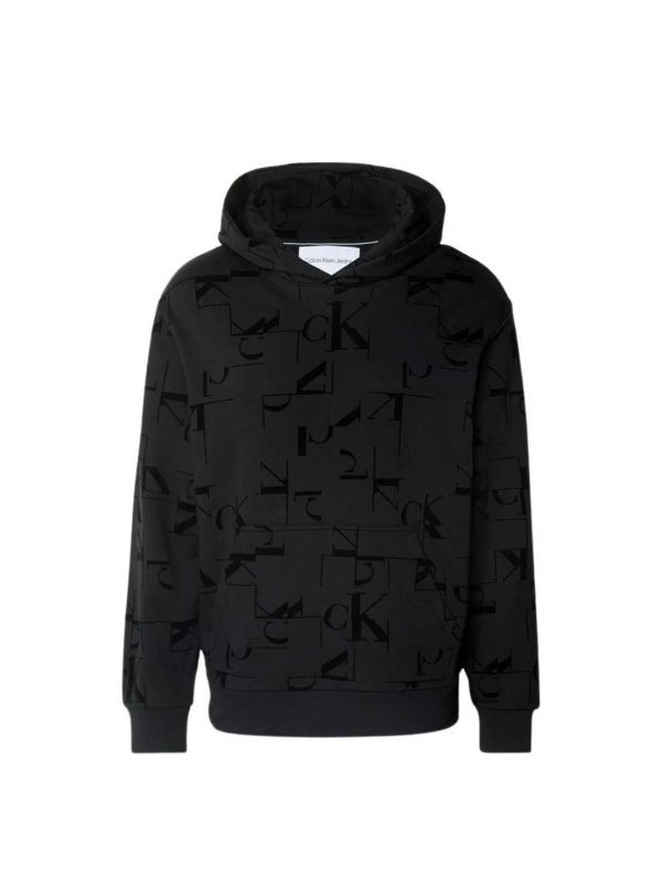 Muški crni Calvin Klein duks sa istobojnim CK printom i kapuljačom