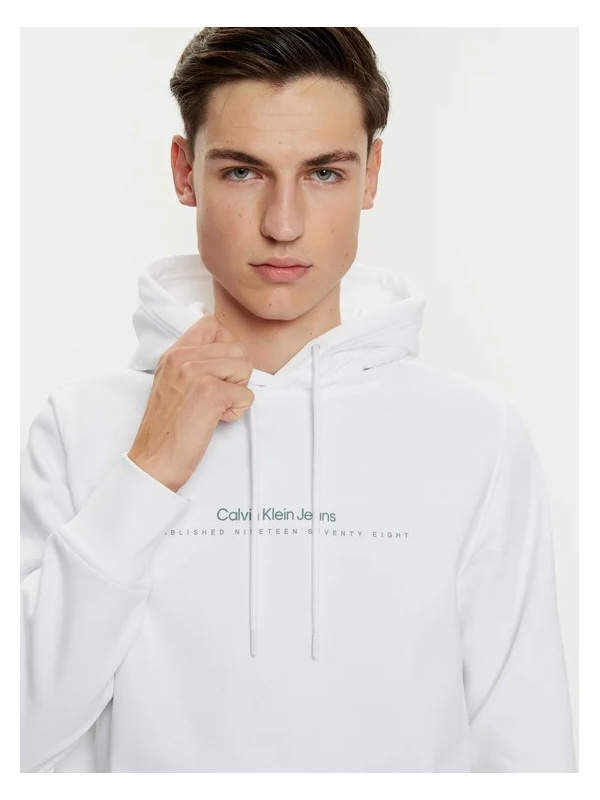 Muška bijela Calvin Klein dukserica s kapuljačom i logom na prsima