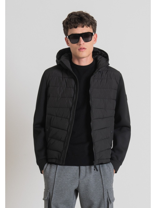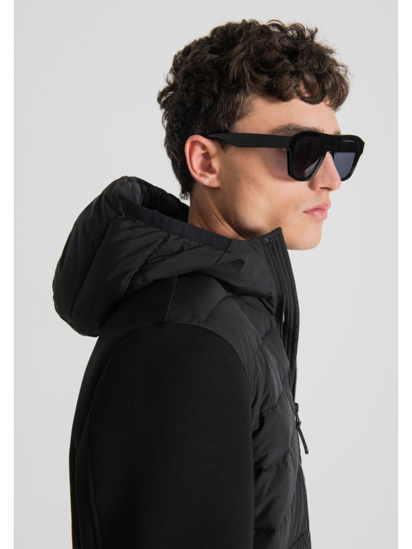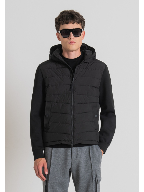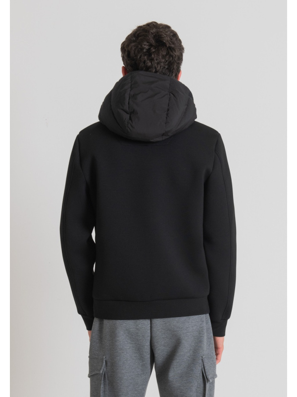 Ova crna Antony Morato jakna odiše sportskim vibracijama. Podstavljena, udobna i praktična gornja odjeća, s dugim rukavima od tople tehničke rastezljive tkanine za ronjenje.