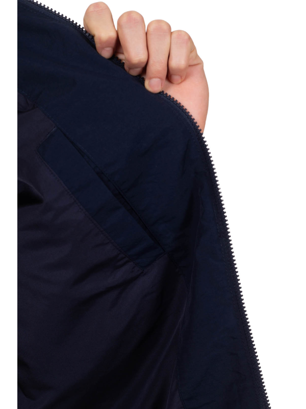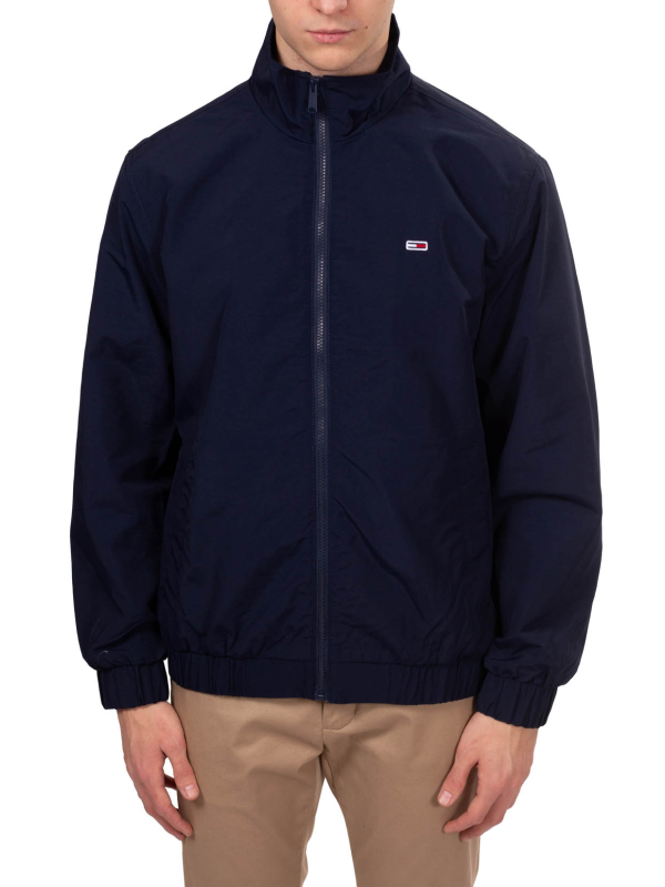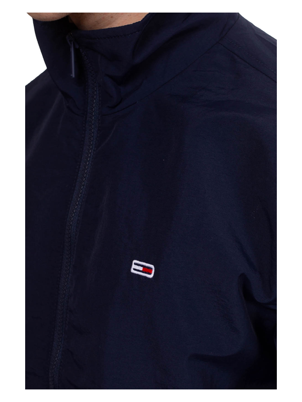 Muška Tommy Hilfiger jakna od tamnoplavog najlona, s patentnim zatvaračem i izvezenim logom na prednjoj strani.