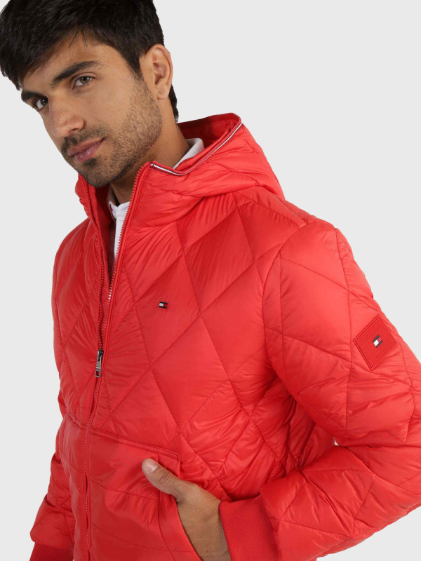 Ova jakna s kapuljačom izrađena je od recikliranog materijala s toplinskom tehnologijom TH Warm i ima mješoviti prošiveni dizajn kontrastnih tekstura.