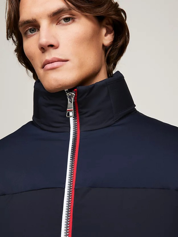 Karakterističan pojas s patentnim zatvaračem s prednje strane dodaje stilski štih ovoj pufer jakni s Tommy Hilfiger tehnologijom zagrijavanja.