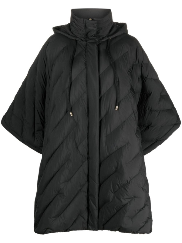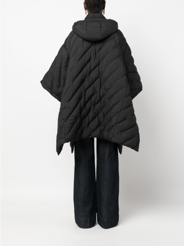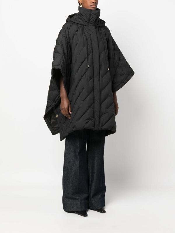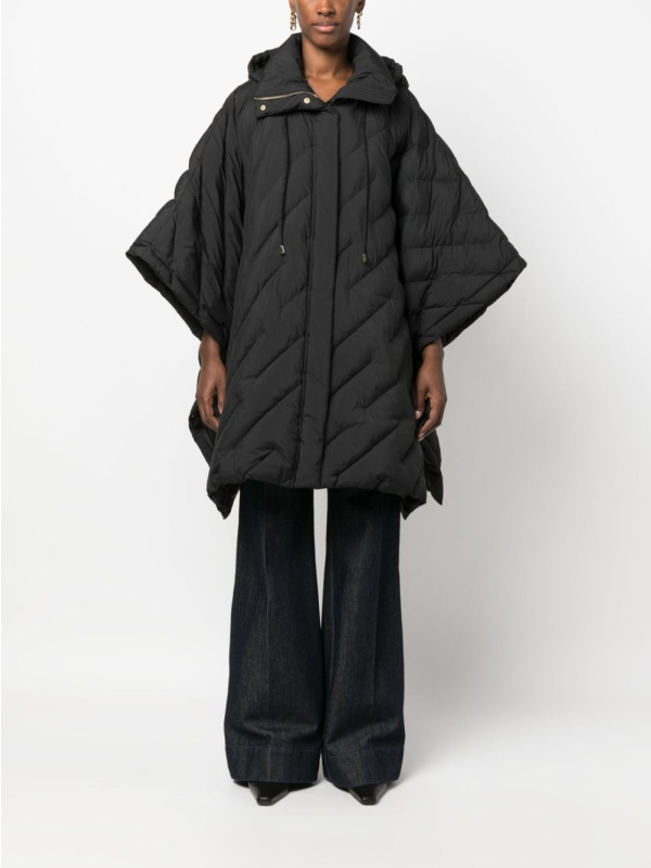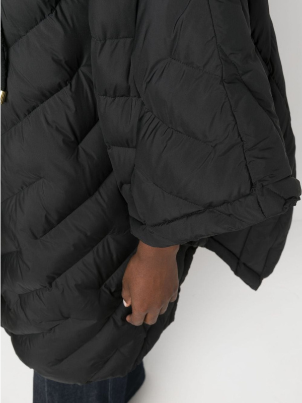 Izrezan na drapiranu siluetu u stilu ogrtača, ovaj crni prošiveni kaput prikazuje PINKO-ov fokus na umješnost i stil. Kopčanje s prednje strane sa skrivenim zatvaranjem, dizajn ima prednost od kapuljača za dodatnu pokrivenost i zaštitu od vremenskih nepogoda.