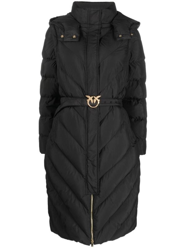PINKO crni prošiveni kaput s kapuljačom