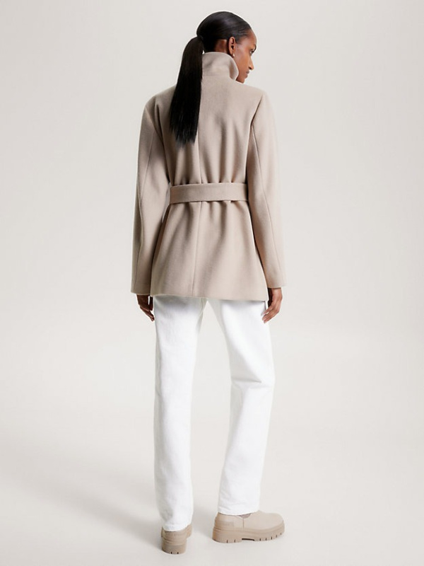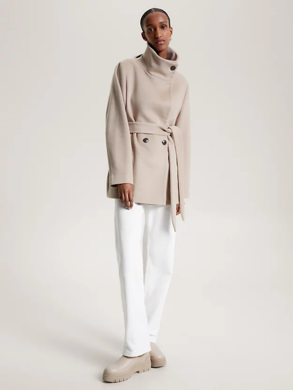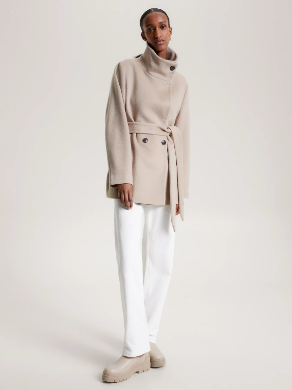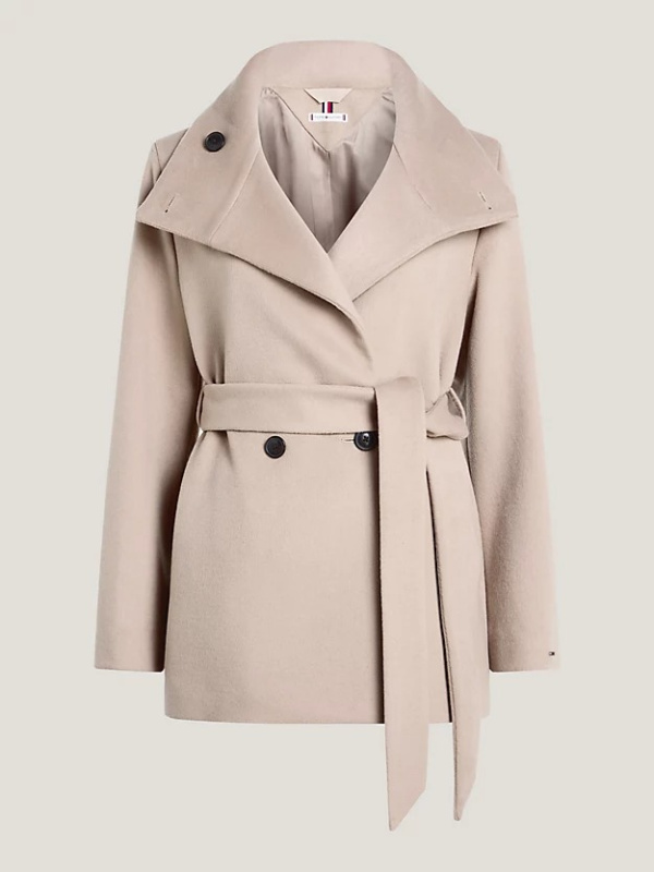 Nosite ovaj kaput na dvostruko kopčanje s remenom s otvorenim ovratnikom ili zakopčajte revere za udobnu siluetu ljevkastog izreza