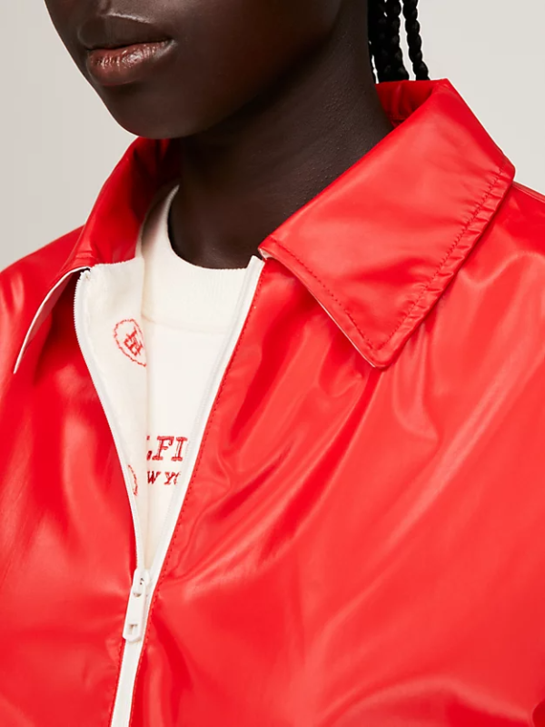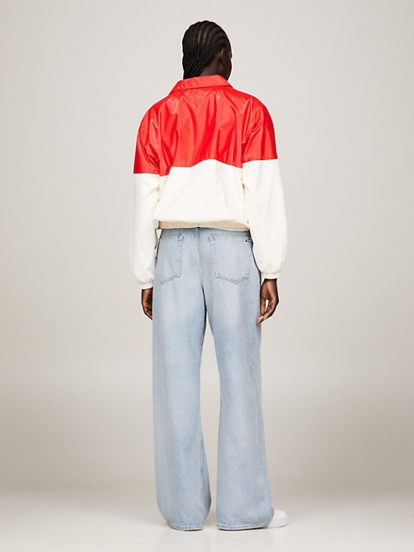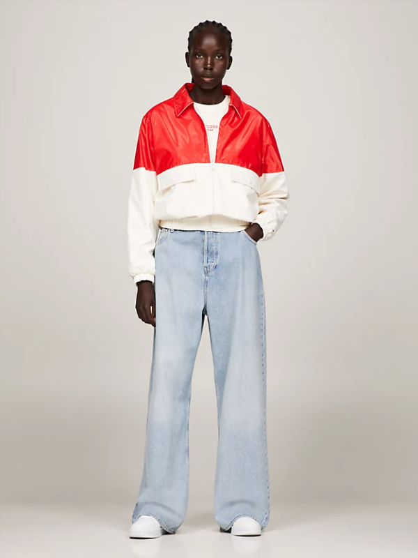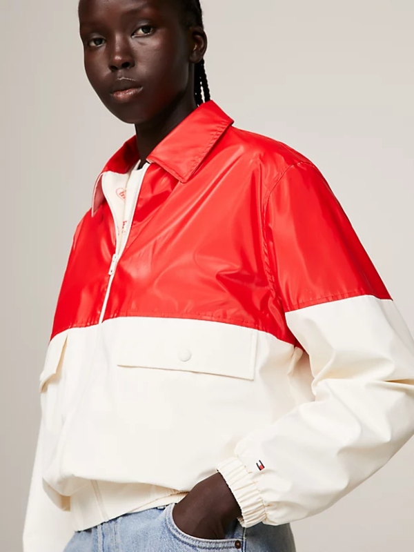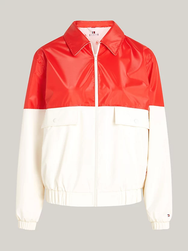 Prihvatite sveučilišni trend s ovom Ivy jaknom blokiranih boja opremljenom praktičnim džepovima na prsima i elastičnim rubovima koji se zatvaraju na toplini.