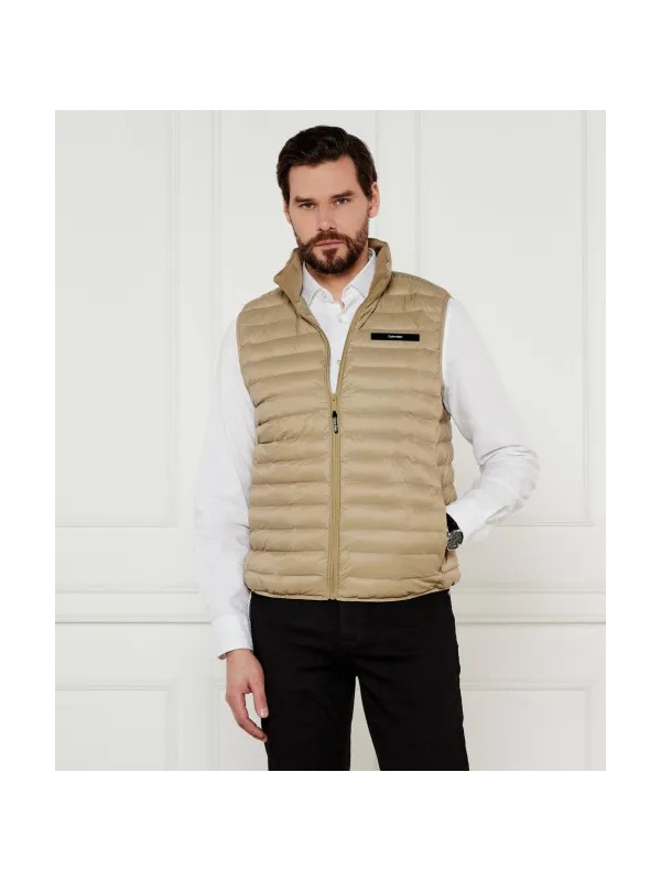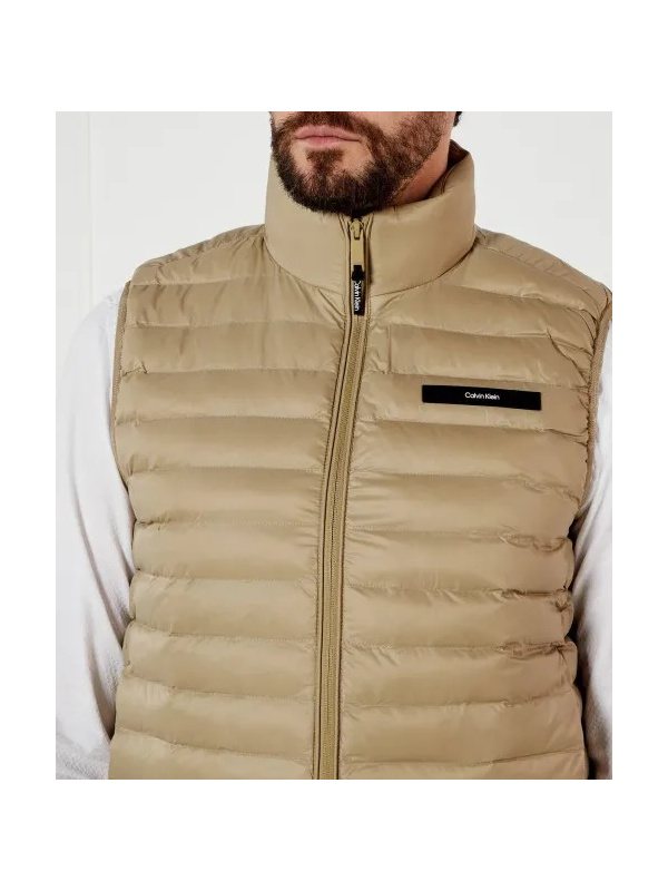 Muški Calvin Klein prošiveni bež prsluk s logo etiketom na prsima