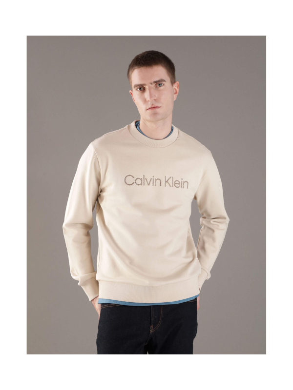 Muška Calvin Klein bež majica dugih rukava s logom na prsima