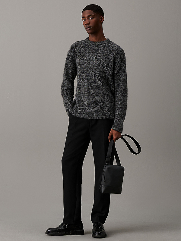 Ženska crna teksturirana reporterska Calvin Klein torba