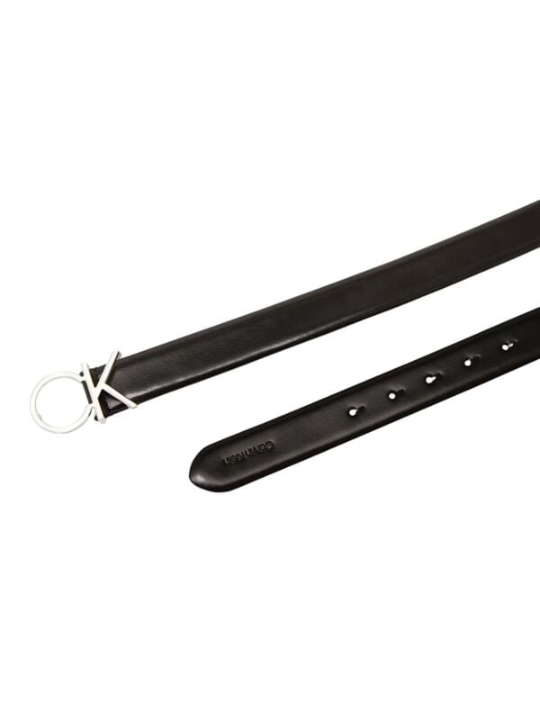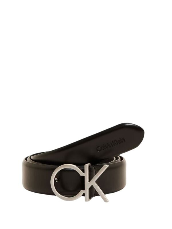 Ženski crni kožni Calvin Klein remen sa metalnom CK šnalom u boji srebra