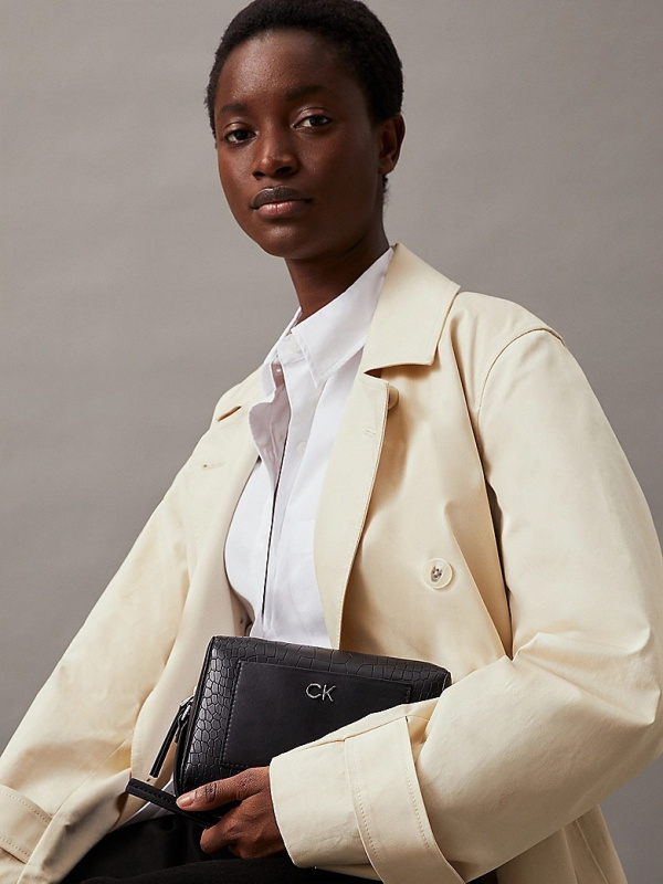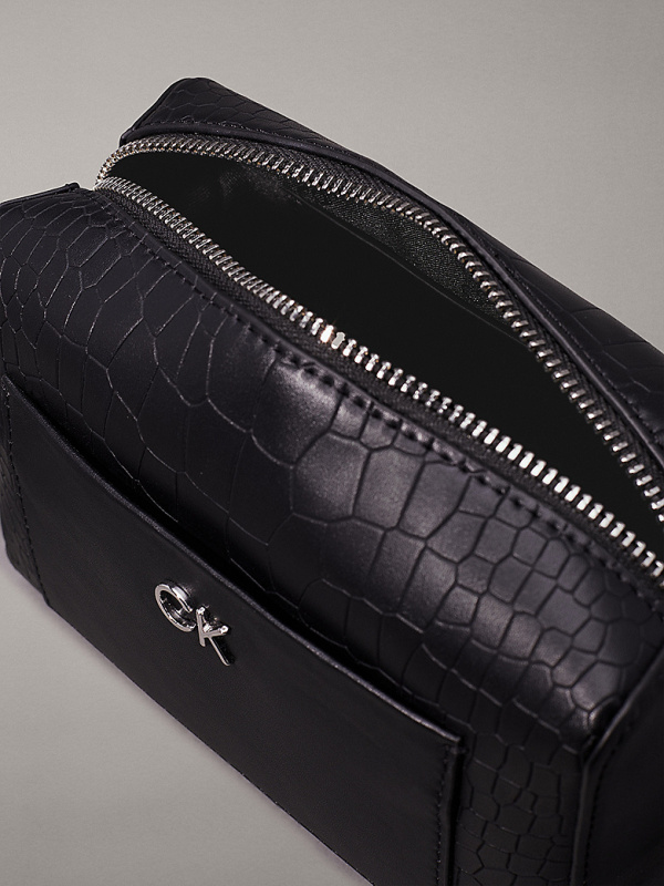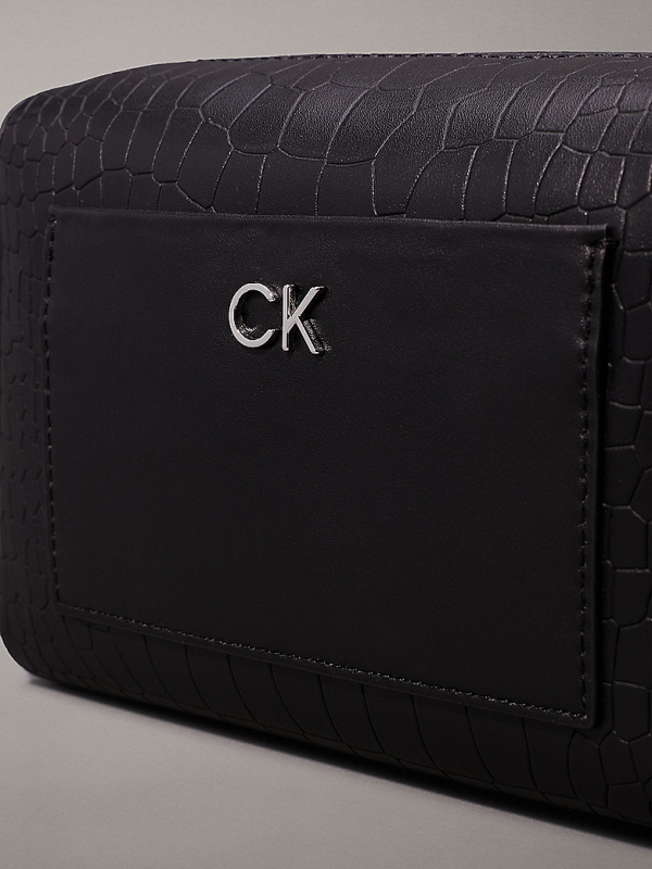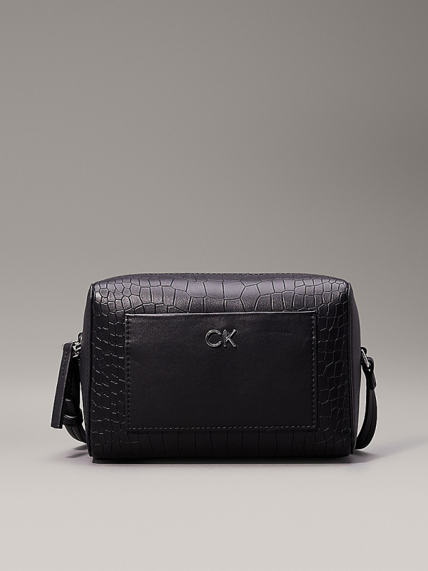 Ženska crna Calvin Klein torba preko ramena s krokodil uzorkom