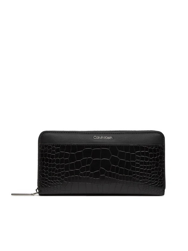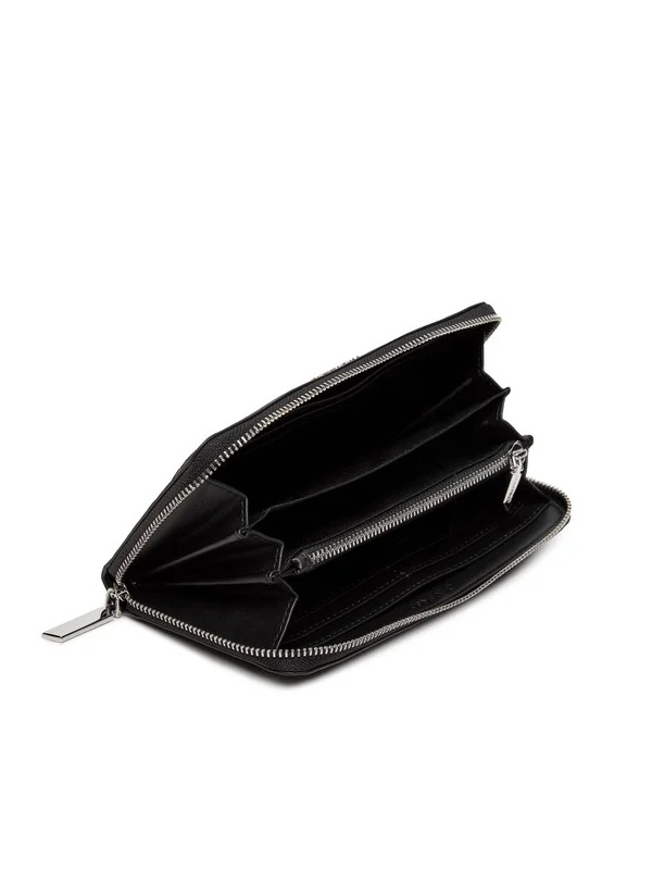 Ženski crni Calvin Klein krok novčanik s patentnim zatvaračem, više unutarnjih džepova i logotipom na jednoj strani