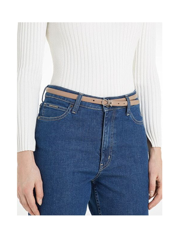 Ženski Calvin Klein bež kožni remen s metalnom kopčom