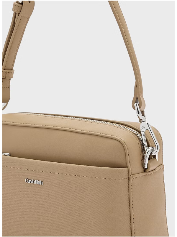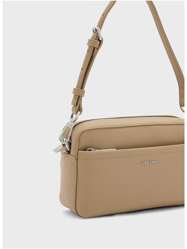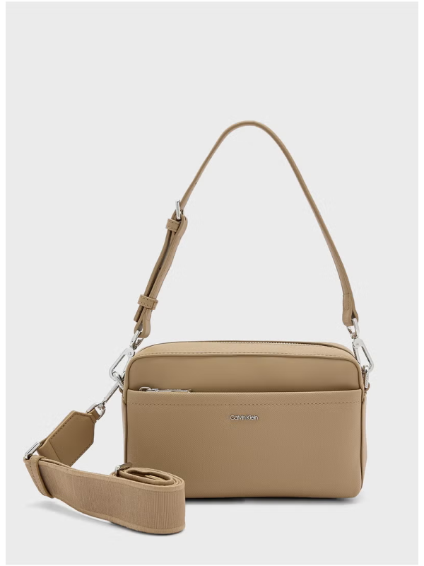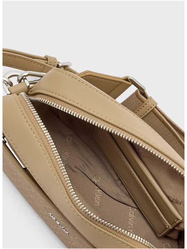 Ženska Calvin Klein bež crossbody torba s logom i dva odvojiva remena