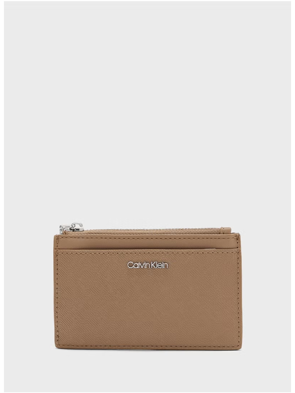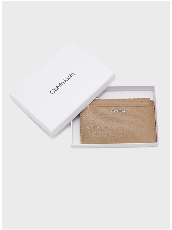 Ženski Calvin Klein bež novčanik s utisnutim all-over monogramom