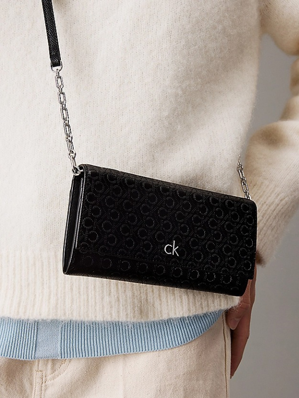 Ženska crna Calvin Klein torba-novčanik s all-over monogramom