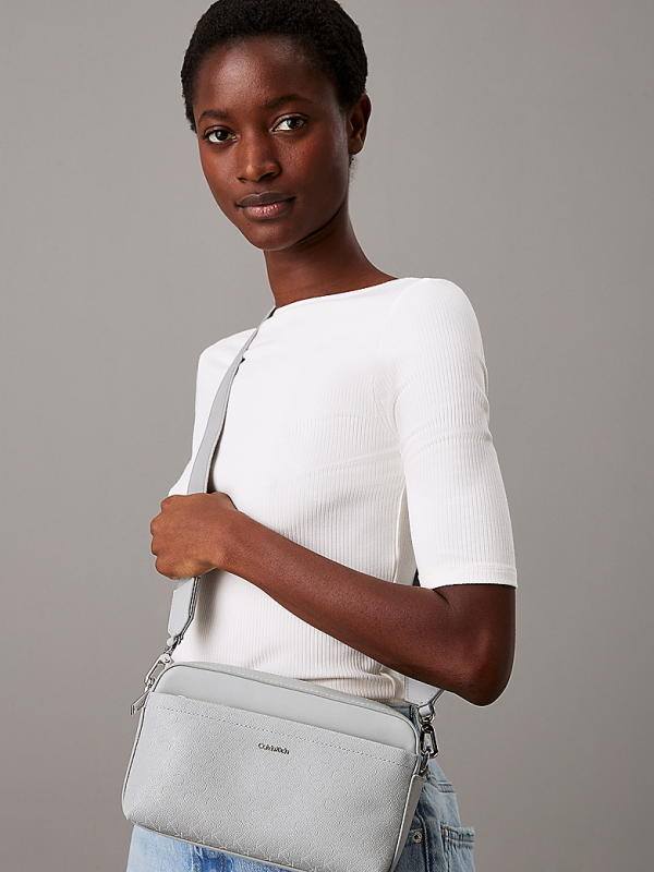 Ženska svijetlosiva Calvin Klein 'camera bag' torba s monogramima