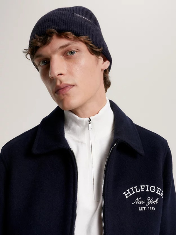 Ova kapa spremna za ulicu izrađena je od tople mješavine vune i pamuka, s pripijenim rebrastim pletenim dizajnom i klasičnom okrenutom manšetom